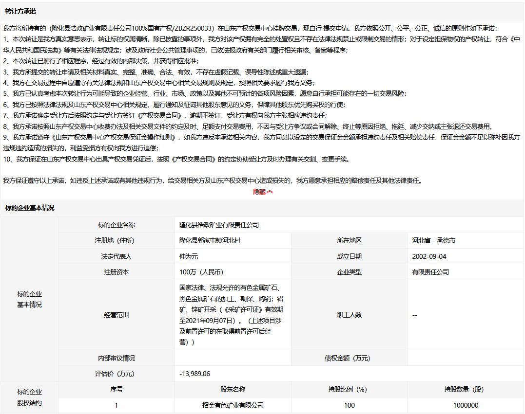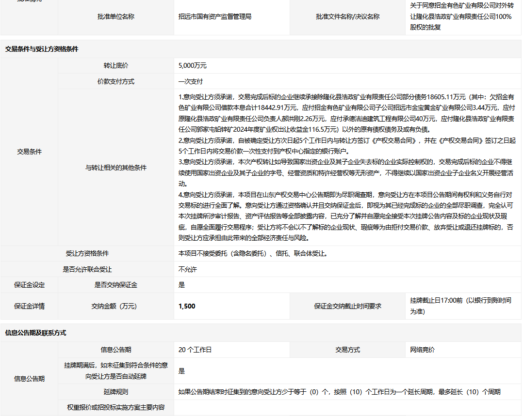 轉讓方:招金有色礦業(yè)有限公司