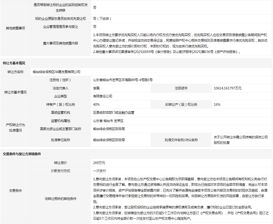 轉(zhuǎn)讓方:煙臺綜合保稅區(qū)華晟發(fā)展有限公司