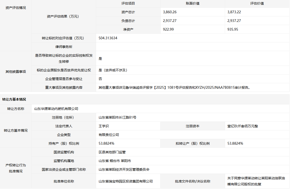 轉(zhuǎn)讓方: 山東華源萊動(dòng)內(nèi)燃機(jī)有限公司