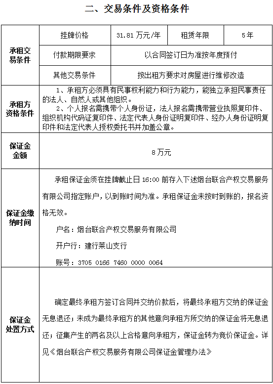 煙臺(tái)市南大街267號(hào)一樓東側(cè)門頭房招租公告